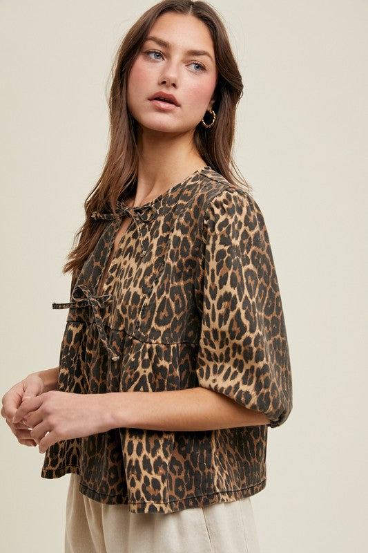Add a wild twist to your wardrobe with this playful Front Tie Leopard Top. Featuring a flattering peplum style and a chic front tie, it effortlessly combines fun and flirty vibes. Perfect for turning heads whether you're out with friends or enjoying a casual day, this top brings a bold, confident edge to any outfit.