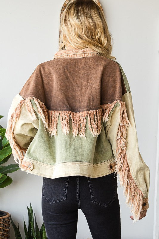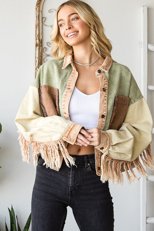 Add a splash of fun to your wardrobe with this playful Color Block Jacket! Featuring a button-down front and trendy fringe details, its twill fabric offers both comfort and style. Perfect for layering, this jacket brings a vibrant twist to any outfit while keeping you cozy and cool.