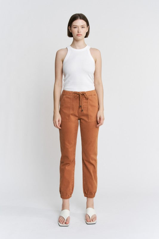 Comfort meets style with our high rise Jogger Pant! Say goodbye to uncomfortable waistbands and hello to effortless style. Perfect for lounging at home or running errands around town, these joggers offer a flattering high rise fit for all-day comfort.