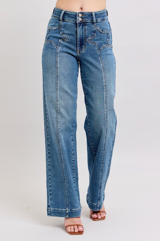 HW Front Star Wide Leg Jeans