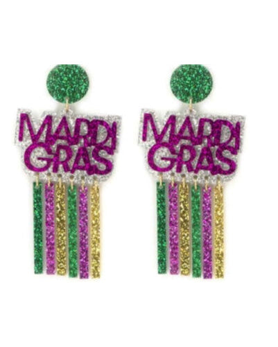 Get ready to party with these Acrylic Mardi Gras Earrings! Featuring the classic colors of the celebration, these dangly earrings are sure to make a statement. Let the good times roll with this fun and playful addition to your jewelry collection. Laissez les bons temps rouler!