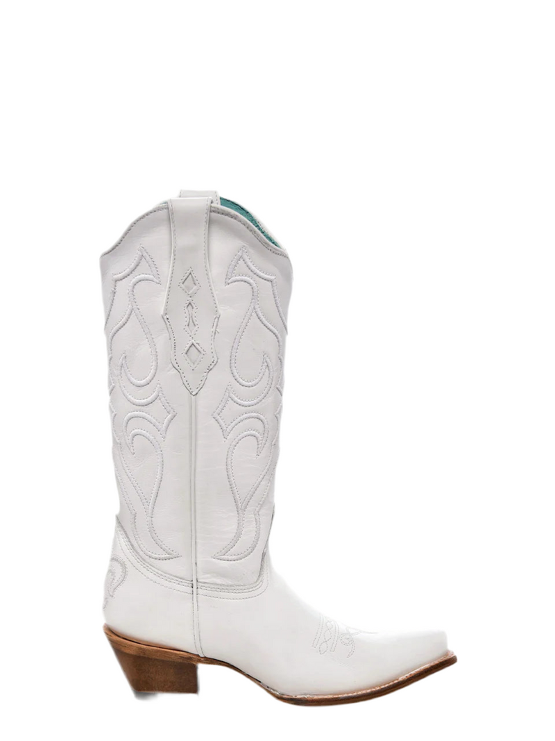 Introducing the White Embroidery Boot - the perfect addition to your wardrobe. Made with a matching stitch pattern, a classic snip toe and a 13" shaft for a stylish and comfortable fit. Complete with a 2" western heel, this is the only white boot you'll ever need.