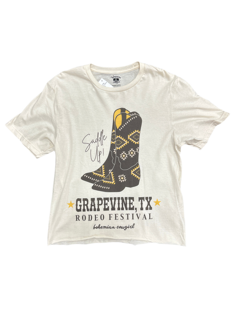 Introducing the Grapevine Boot Tee, featuring a unique Aztec boot graphic inspired by the vibrant city of Grapevine. Made with high-quality materials, this tee offers a comfortable and stylish look for any occasion. Show off your love for Grapevine with this one-of-a-kind boot tee.