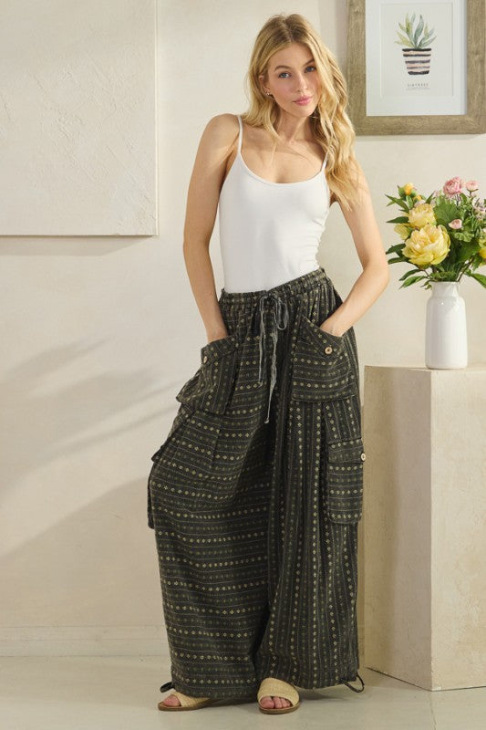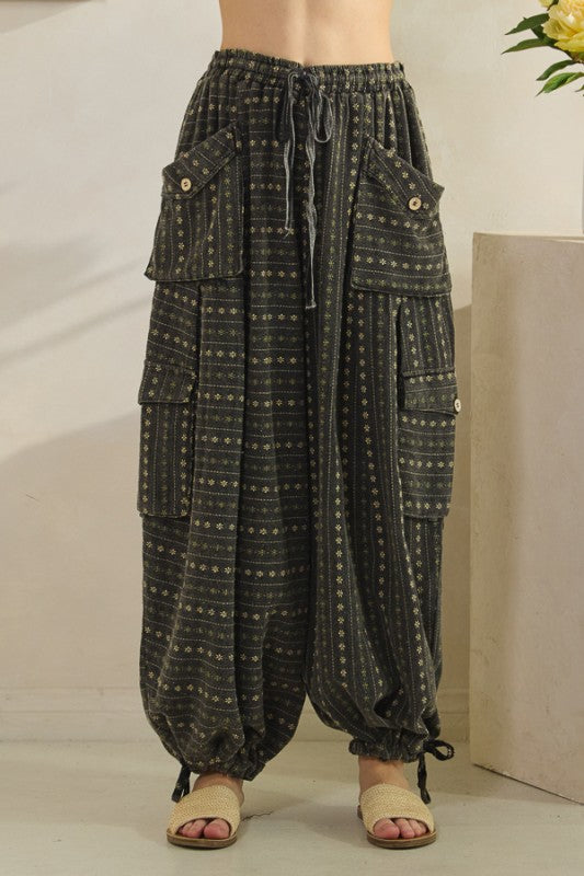 These 3D Pocket Pants bring playful charm with their vibrant flower print and soft mineral wash detail. Designed for comfort, they feature a relaxed fit and an elastic waist with a drawstring for the perfect adjustable feel. The tie ankle cuffs add a fun twist, making these pants as stylish as they are cozy. Perfect for lounging or casual outings with a splash of personality.