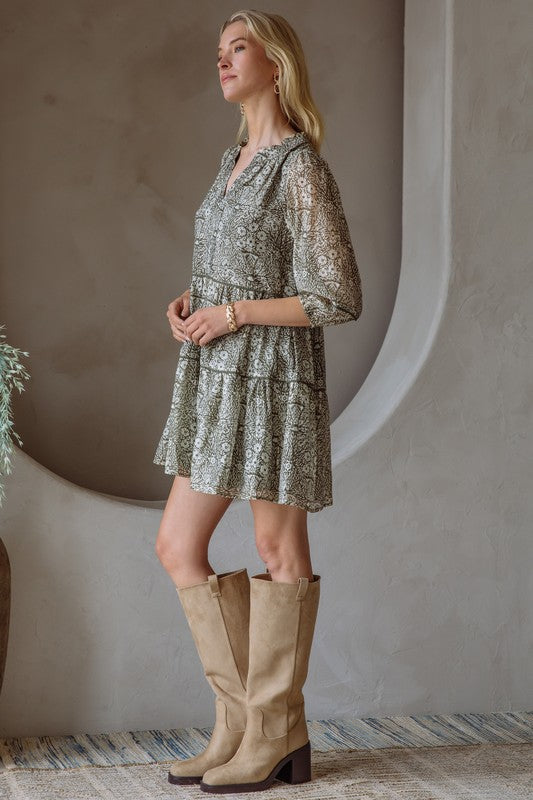 This Abstract Mini Dress features elegant 3/4 sleeves, offering a balanced blend of coverage and style. Its contemporary design and flattering mini length make it a versatile choice for both casual and semi-formal occasions. Crafted to provide comfort and a sleek silhouette, this dress is ideal for those seeking a modern, sophisticated look.