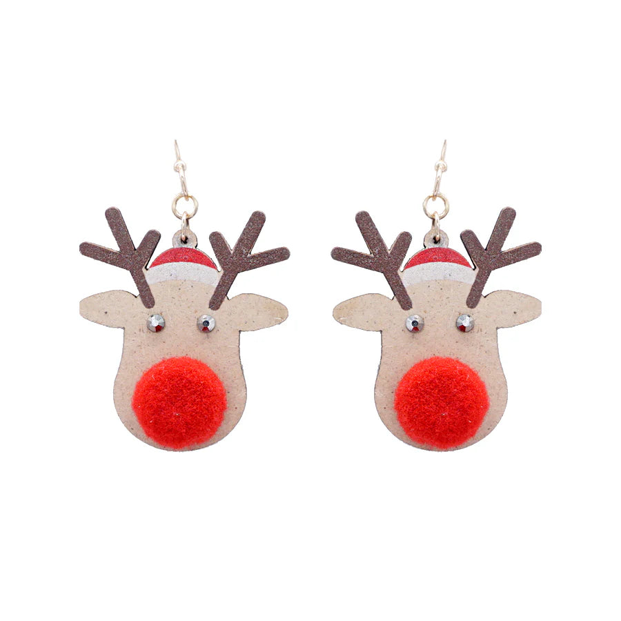 Add a festive touch to your holiday look with these playful Christmas Reindeer Earrings. Crafted from lightweight wood, they feature a charming Rudolph design that brings instant cheer. Perfect for holiday parties or gifting, these earrings combine cozy seasonal spirit with comfortable wear. Embrace the fun and spread some jolly vibes wherever you go!
