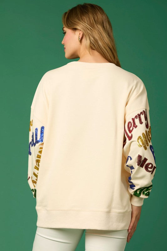 Make a statement this holiday season with our Merry Sequin Top! This french terry pull over is accented with sparkling sequins that spell out "merry," adding a touch of festive flair to your wardrobe. Stay cozy and stylish all at once with this quirky and playful top.