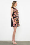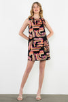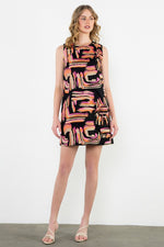 Expertly crafted with a modern abstract print on the front, this Sleeveless Print Dress is the perfect addition to your wardrobe. The sleek and stylish design showcases your unique taste while keeping you cool and comfortable in warm weather. Elevate your look with this must-have dress.
