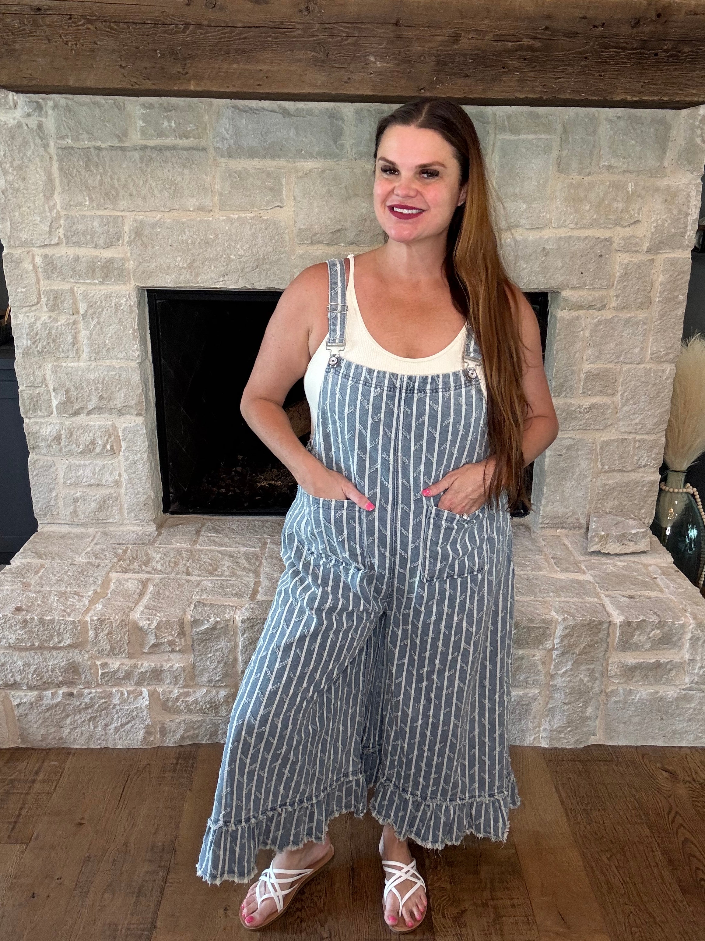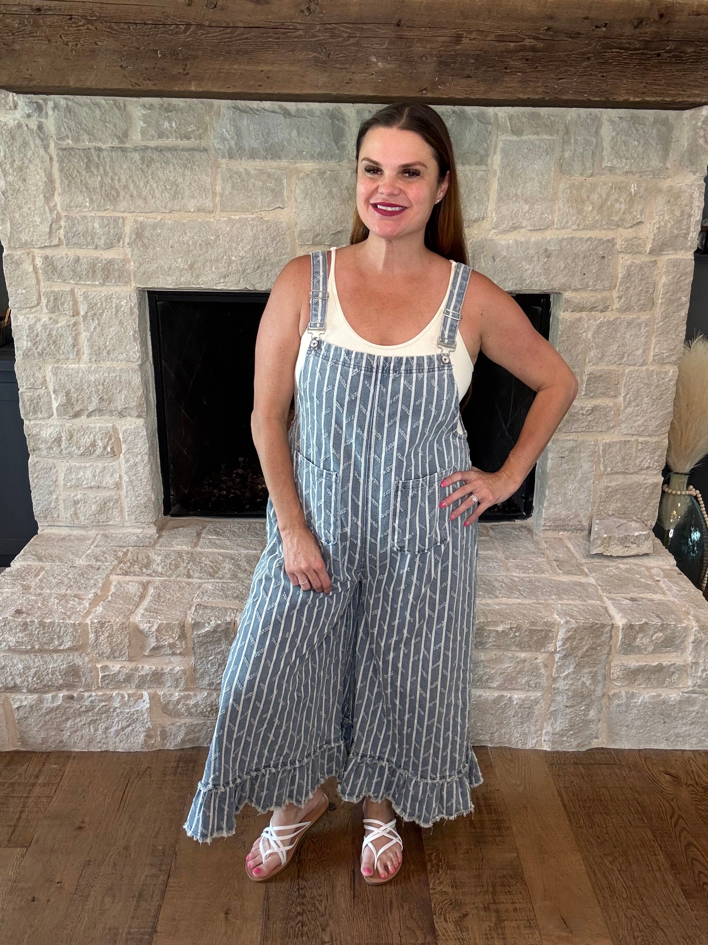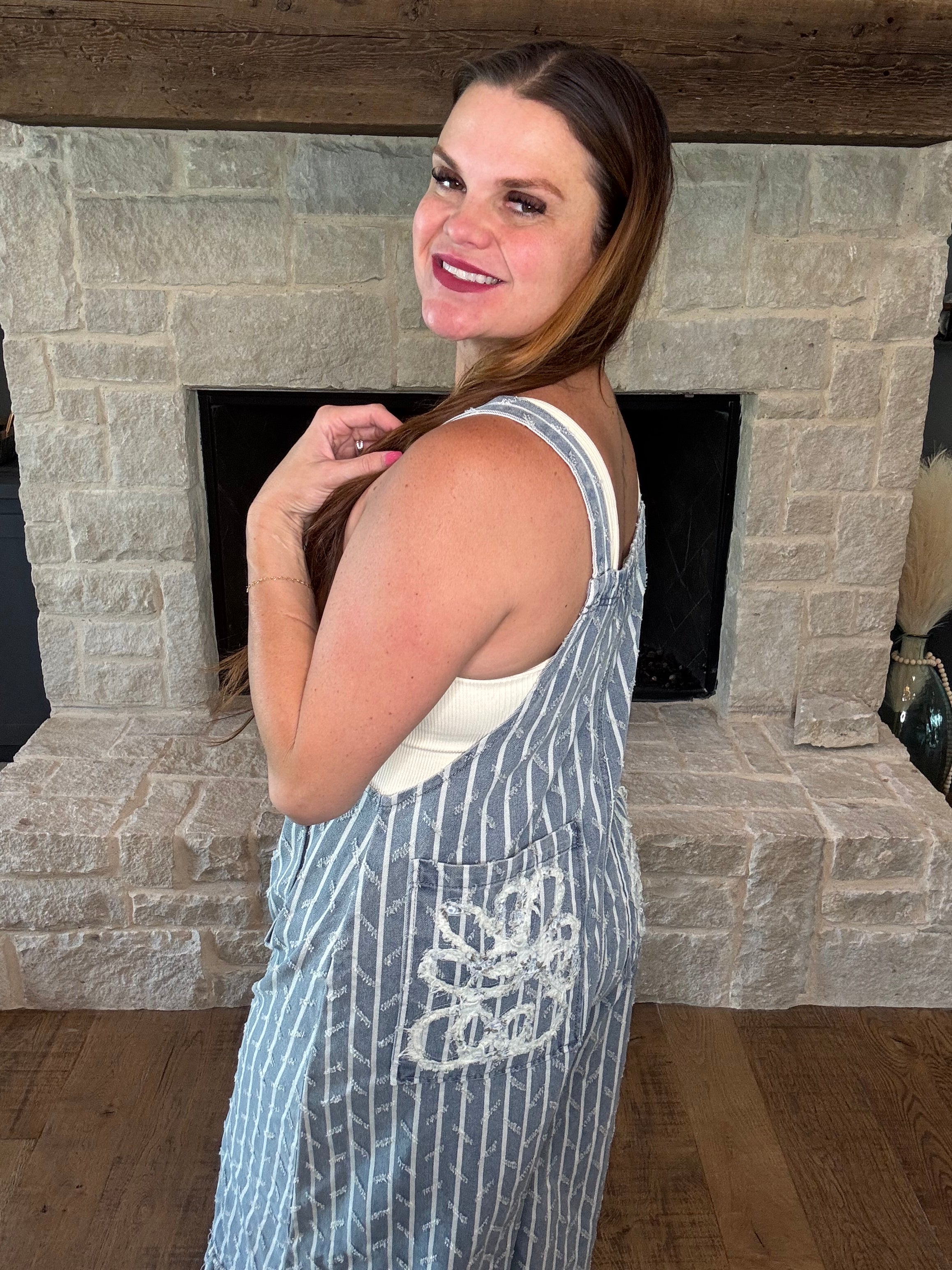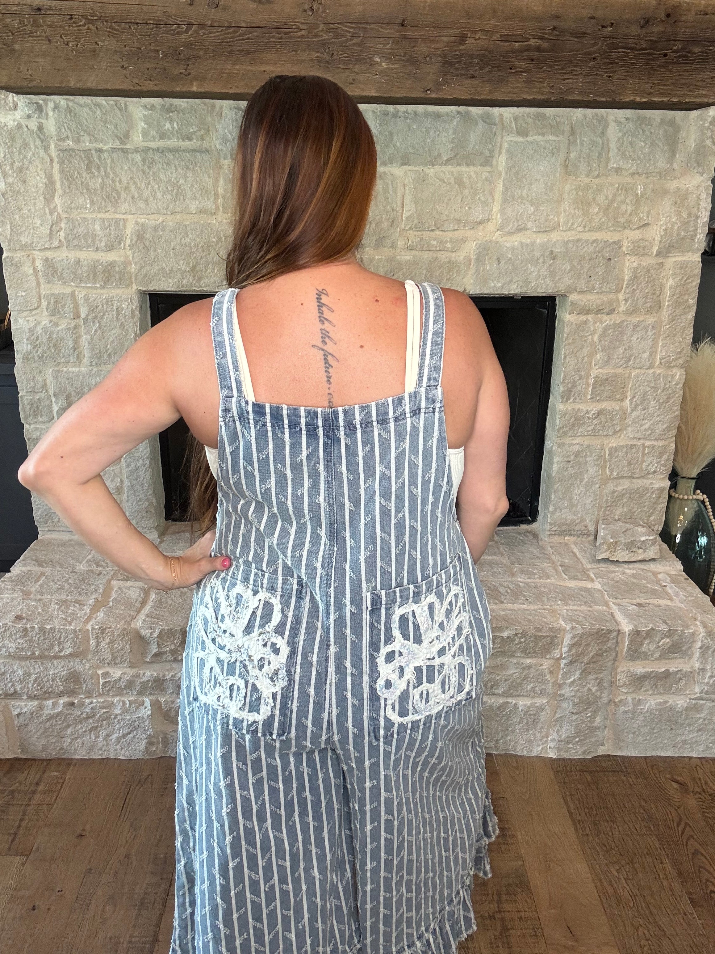 This Stripe Denim Overalls brings a playful twist to classic denim with its charming ruffled hemline that adds a flirty bounce to every step. The delicate floral lace patchwork on the back pockets offers a sweet, unexpected detail that makes this jumpsuit uniquely fun and stylish. Perfect for adding a touch of whimsy to your everyday look!