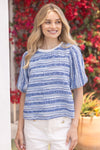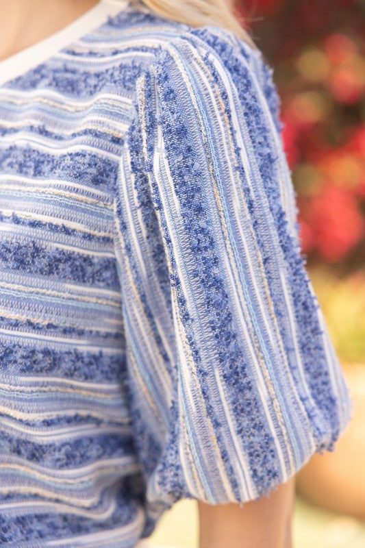 Elevate your casual wardrobe with our Stripe Textured Top featuring charming half puff sleeves! The playful stripe pattern adds visual interest while the textured fabric brings dimension to your look. Perfect for mixing and matching, this top adds a touch of whimsy to jeans, skirts, or shorts for effortless style on any occasion.